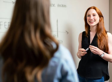 Po sėkmingo pirmojo užsiėmimo tęsiame darbą kartu. Pamokos yra interaktyvios ir įtraukiamos, kuriose mokiniai aktyviai kelia klausimus, o korepetitoriai nuolat motyvuoja ir padeda įveikti iššūkius, kurdami artimą ir palaikančią atmosferą.